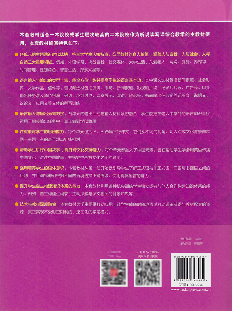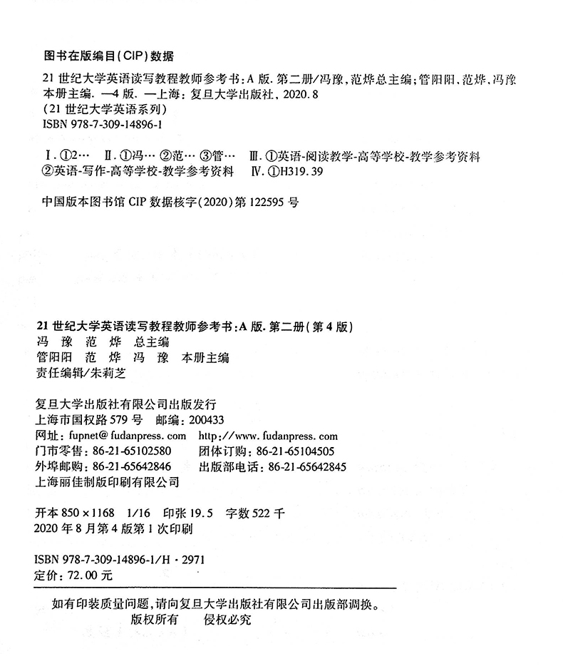 冯豫 范烨 总主编 21世纪大学英语读写教程教师参考书.第二册 复旦大学出版 A版 学生用书与教学指导内容合二为一 社 第四版