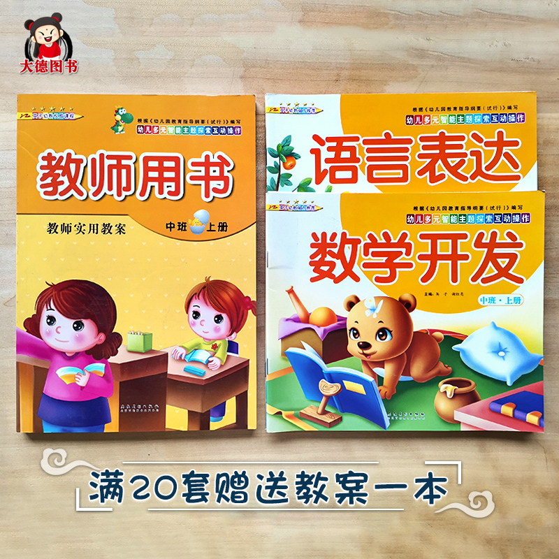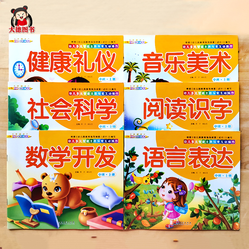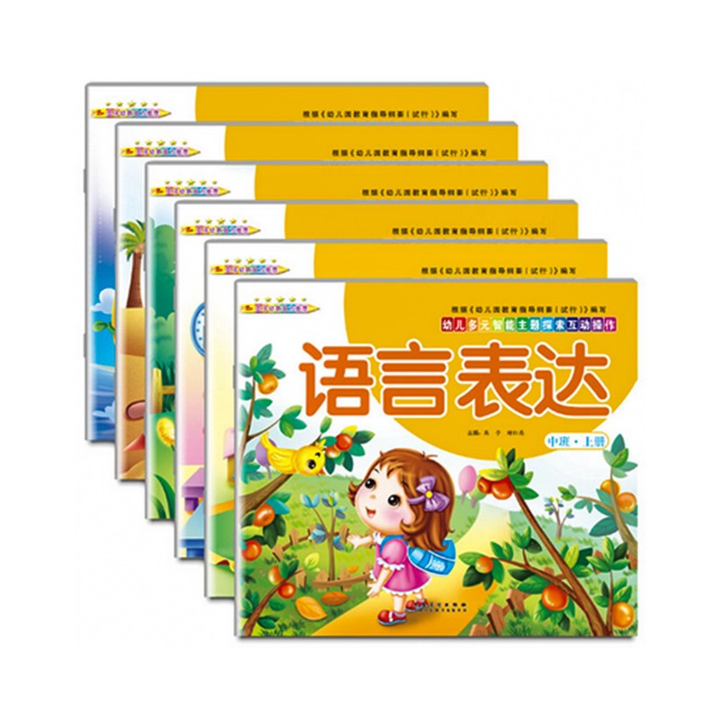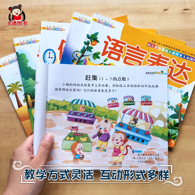 5岁儿童益智书数学一日一练拼音学习教材语言表达天天练 幼儿园中班教材全套6本带塑封秋季 上册学期早教课程全套课本幼儿练习册3