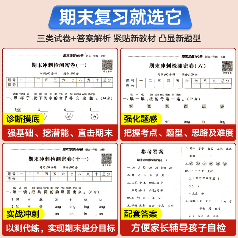 期末冲刺100分一年级上册试卷测试卷全套语文数学人教版 期中考试卷子教材同步训练练习册 小学1年级期末真题试卷小学生同步专项单元