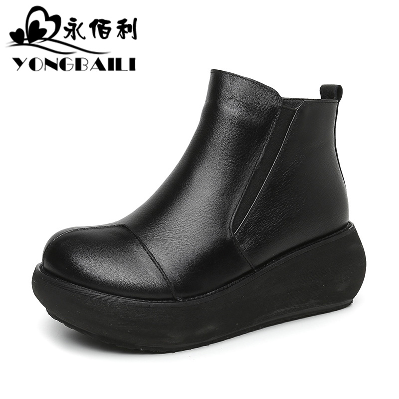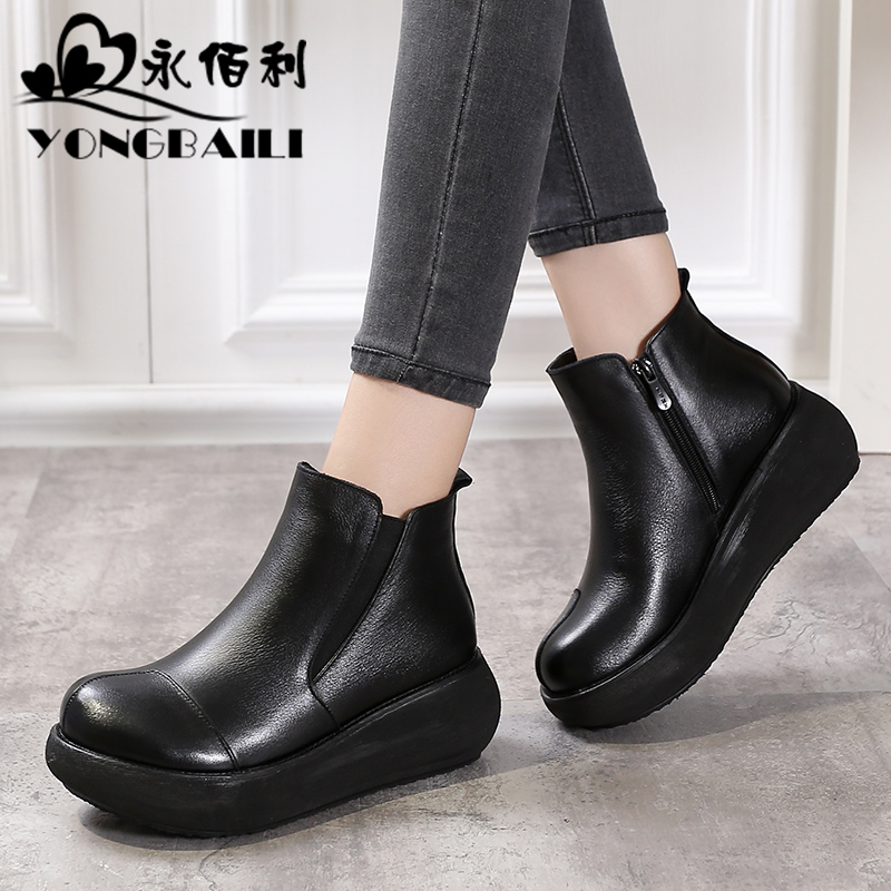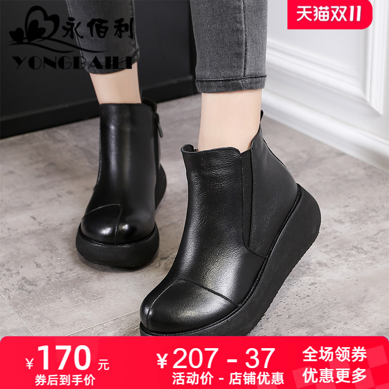厚底真皮短靴女2025秋冬新款 靴 牛皮皮靴简约舒适休闲复古圆头女鞋