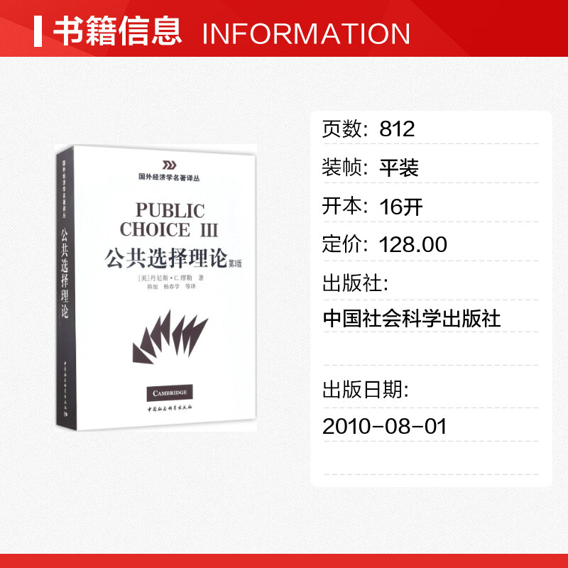 译 英 著;韩旭 公共选择理论第3版 著作 新华书店正版 Dennis 励志 丹尼斯·C.缪勒 图书籍 C.Mueller 经济理论经管 等