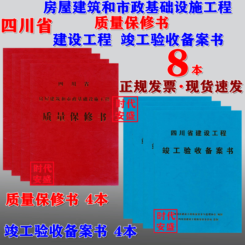 红4蓝4全8册 备案书 保修书 四川省房屋建筑和市政基础设施工程 房屋建筑 质量保修书 竣工验收 市政 竣工验收备案书