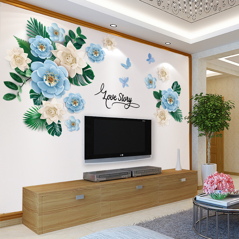 客厅电视背景墙面装 饰3d立体墙纸自粘墙贴画墙花墙壁贴纸墙上墙画