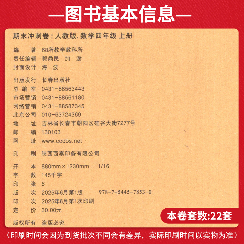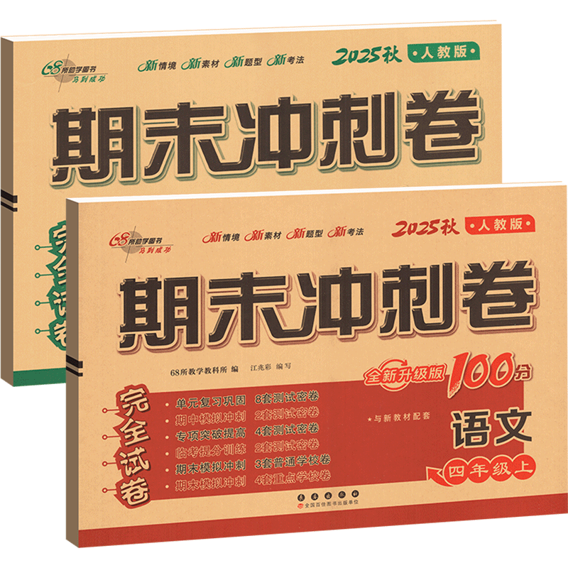 小学生4年级上试卷同步练习单元 新版 2本套装 期中期末冲刺考试测试卷子 期末冲刺100分四年级上册语文数学人教版