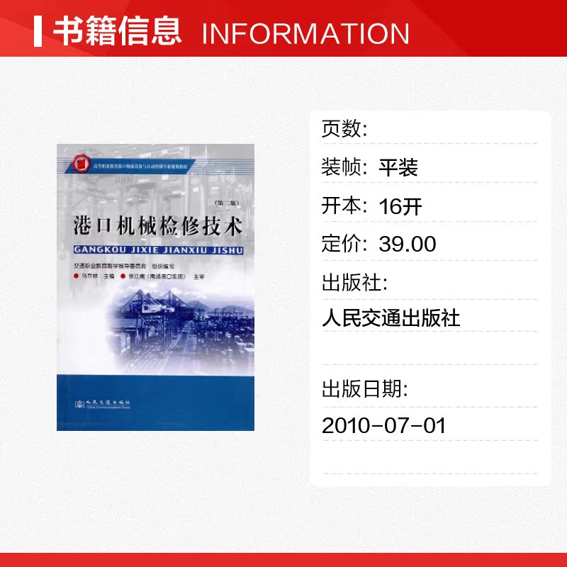 著作 主编 人民交通出版 第二版 社股份有限公司 图书籍 马乔林 新华书店正版 港口机械检修技术 机械工程专业科技