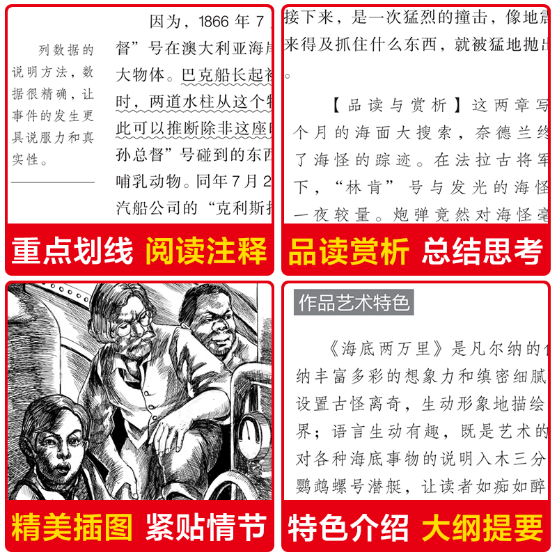 初中生无障碍阅读文学书籍七年级下册课外书必读经典 海底两万里初中版 小学版 书科幻小说三部曲 世界十大名著畅销书 原著正版