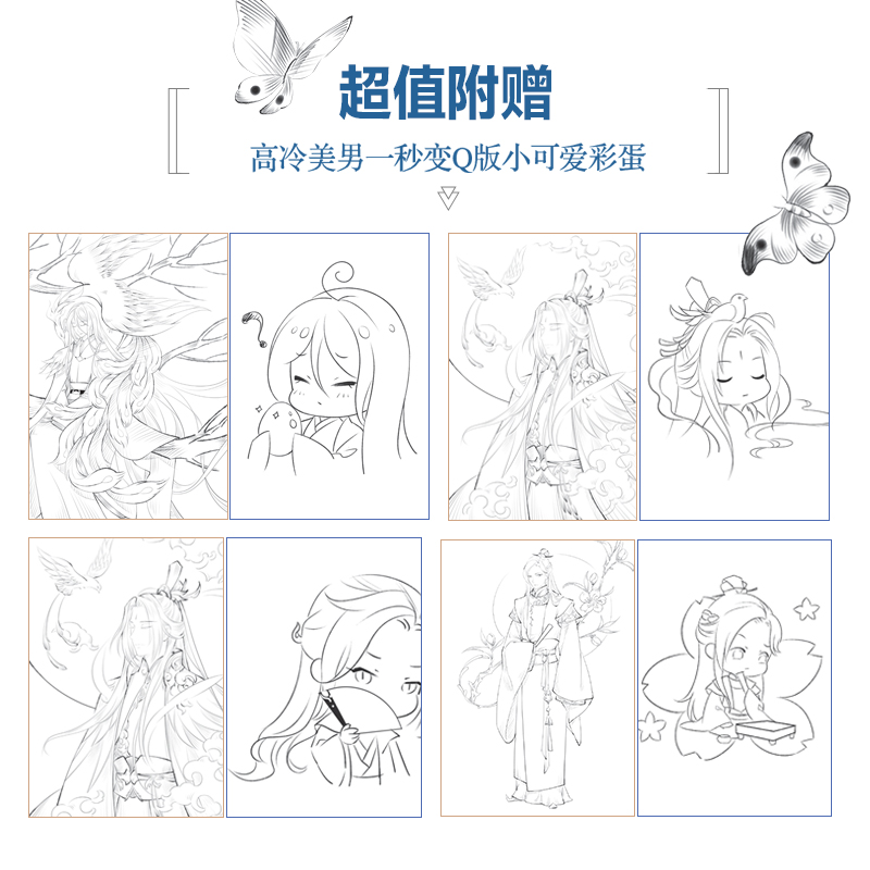 线描画稿教材线描书临摹画册 线描画册临摹手绘 素描书入门教材绘画书籍手绘入门 古风美男漫画线描技法 盛世蓝颜