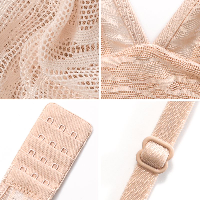 诗叶性感法式 无钢圈三角杯细肩带兔耳杯文胸罩夏 内衣女蕾丝布薄款