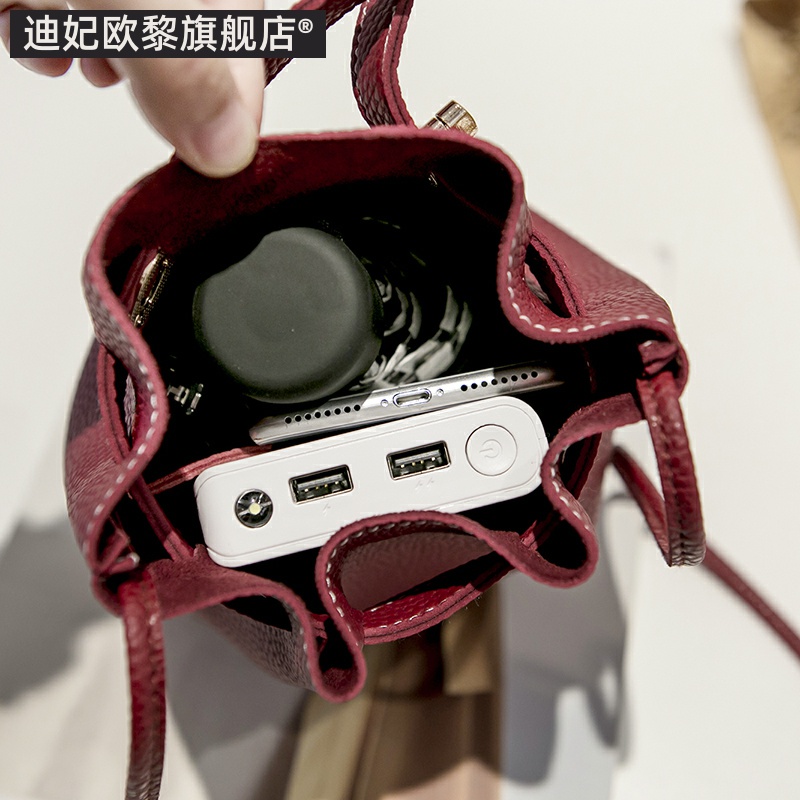 新娘礼物TOUTOU透透头层牛皮菜篮子水桶包通勤大容量红色结婚婚包