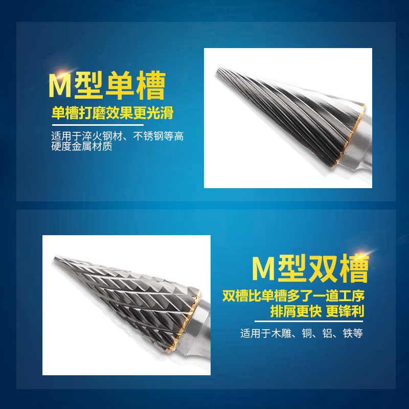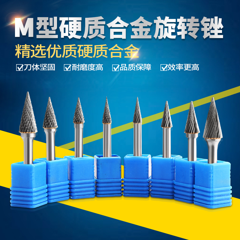 信工合金旋转锉钨钢磨头M型锥形尖头扩孔钻金属木工雕刻打磨铣刀