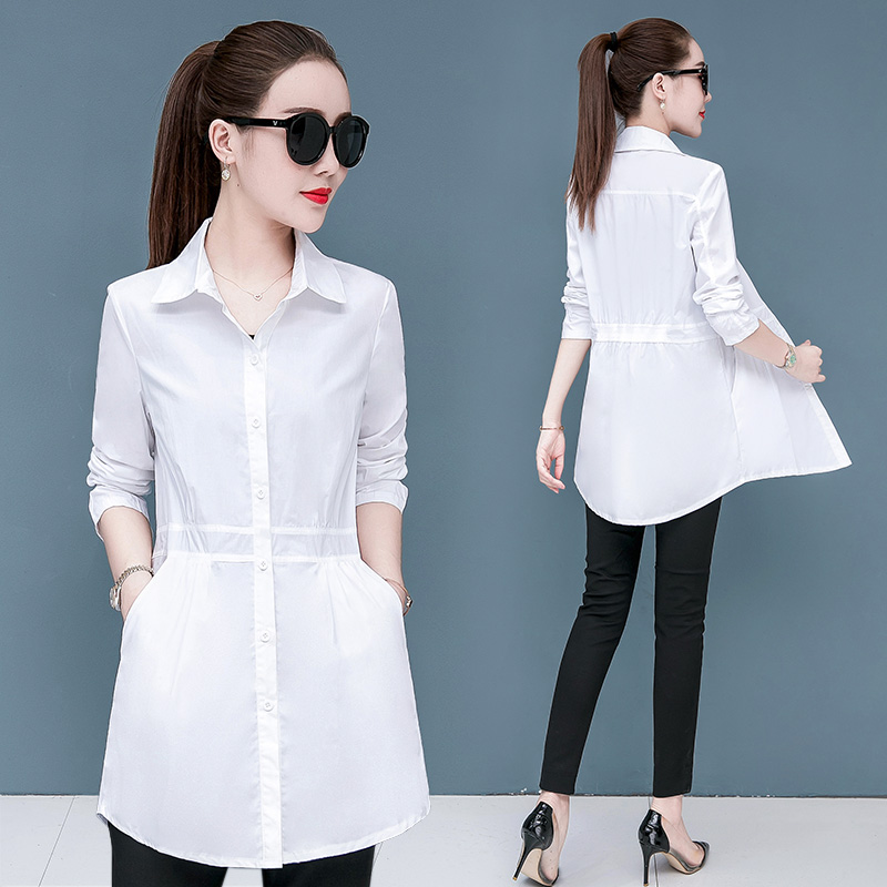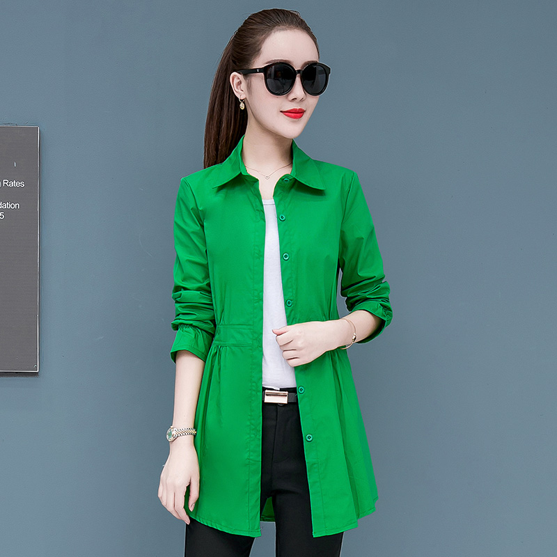 长袖 韩版 衬衫 新款 衬衣收腰显瘦百搭外套风衣 女士 纯棉春秋中长款