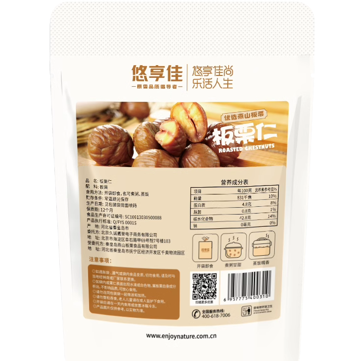 悠享佳板栗仁100g甘栗仁栗子坚果孕妇儿童休闲零食去壳便携袋装