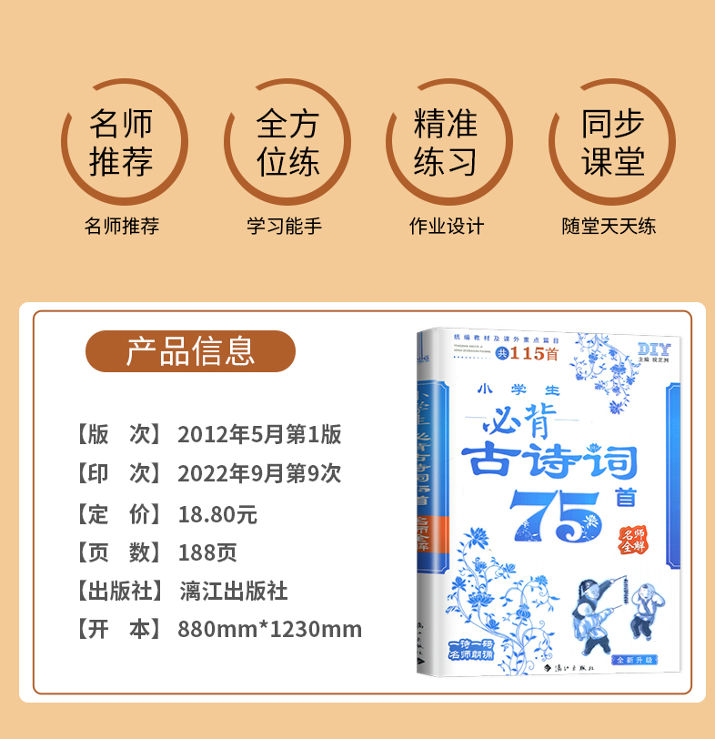 唐诗宋词同步训练语文阅读理解知识大全漓江 小学古诗词大全集一二三四五六年级教辅 小学生必背古诗词75首新课标 统编版