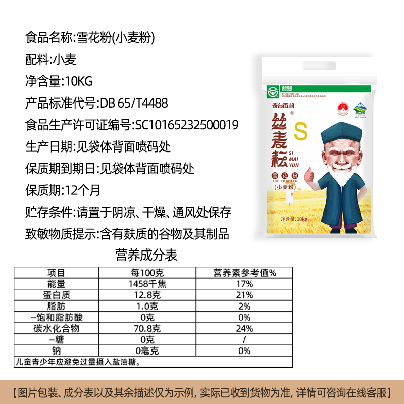 新疆奇台丝麦耘雪花粉家用面粉10kg筋道面条饺子馒头小麦麦芯粉