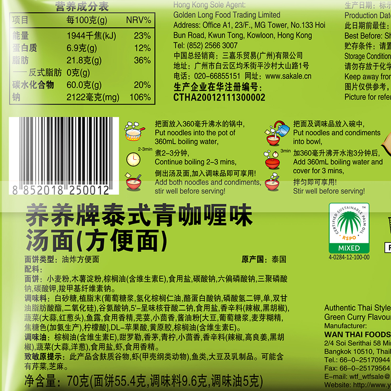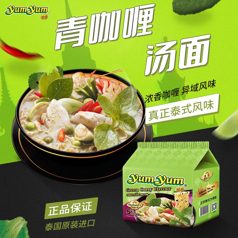 养养泰式 5袋方便面海鲜进口袋面速食宵夜 冬阴功青咖喱泡面70g