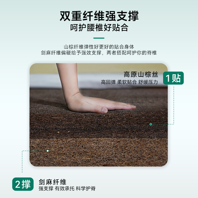 政府补贴15% 大自然A1山棕床垫棕榈非椰棕黄麻护脊椎硬垫可定制