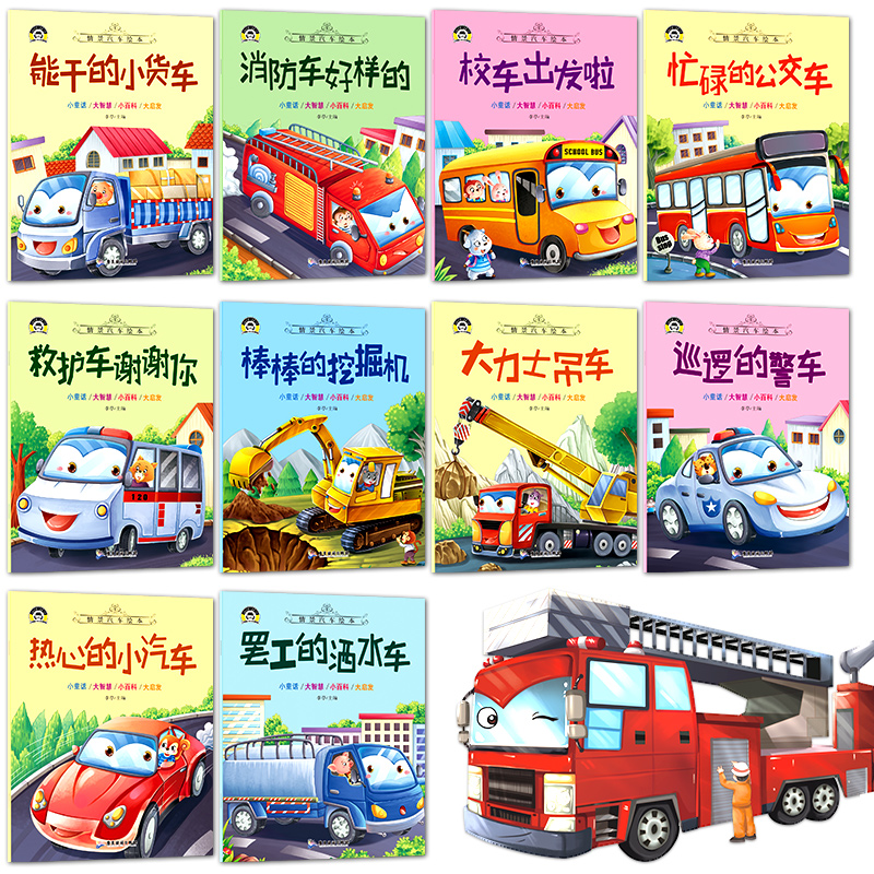 8周岁儿童汽车认知早教启蒙幼儿园正版 书籍宝宝睡前亲子阅读硬壳益智故事幼儿绘本图书 汽车小童话图画书绘本全10册注音版