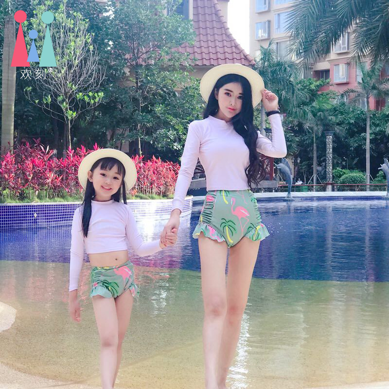 夏海边小清新防晒游泳装 亲子性感显瘦母女泳衣温泉长袖 分体亲子款
