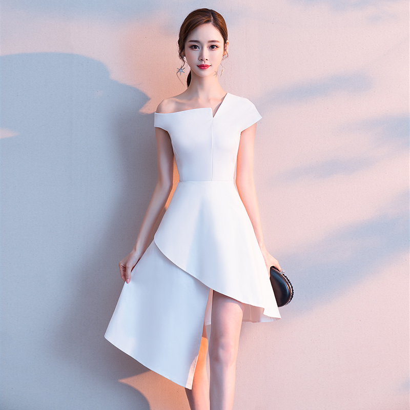 宴会小礼服女2025新款 高贵简单大方白色领证小个子领证登记连衣裙