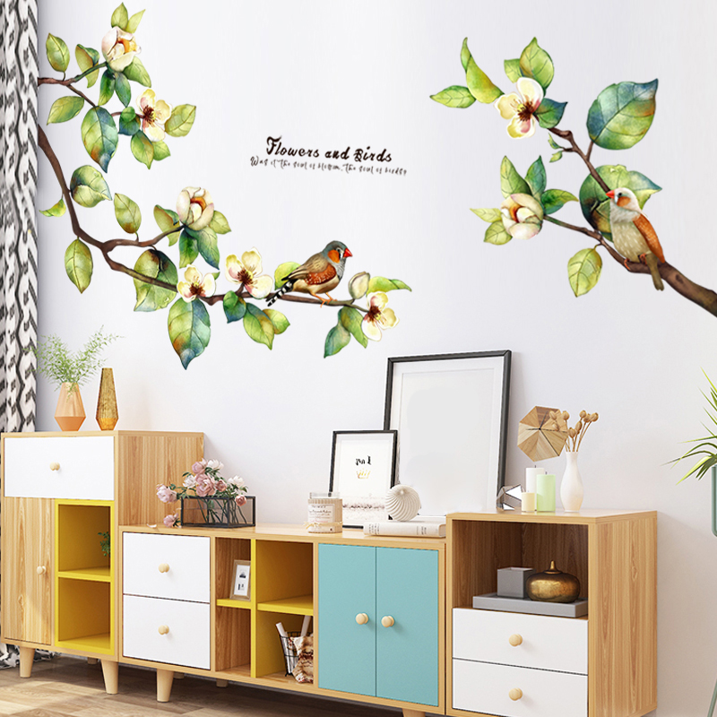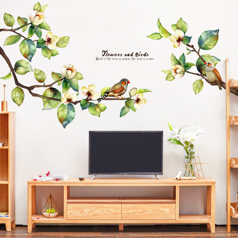 大型客厅电视背景墙贴纸清新花鸟新中式 饰墙壁自粘贴画 卧室床头装