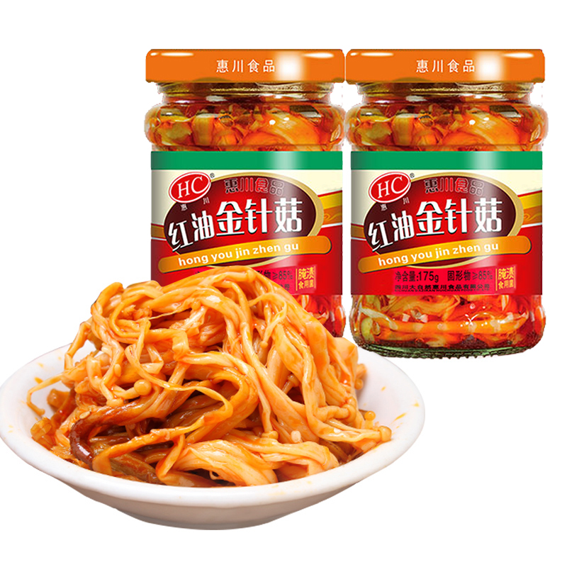 惠川红油金针菇175g瓶装 即食开胃菜下饭菜 四川香辣下饭菜罐装
