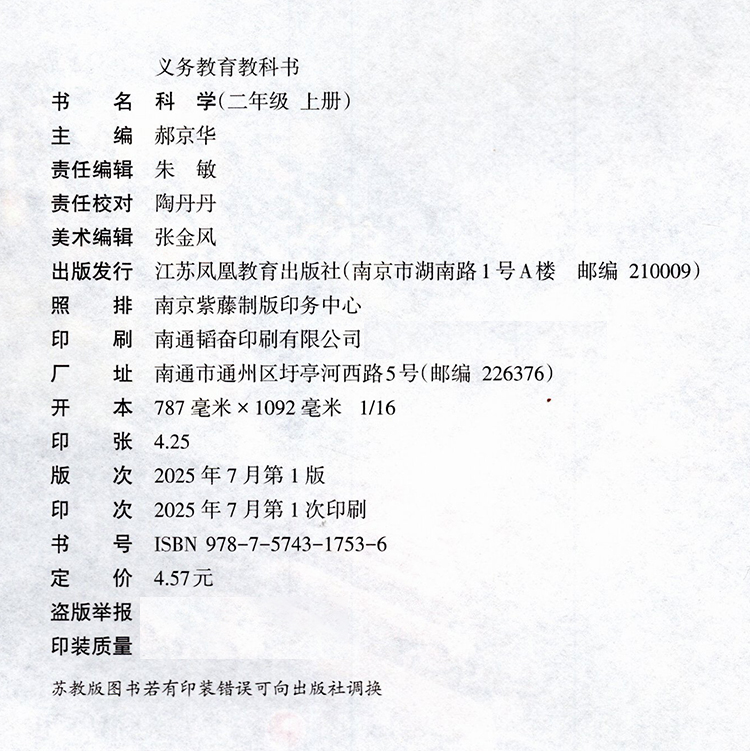 科学学生用书 二年级上册 小学生课本 2025秋 江苏凤凰教育出版 苏教版 义务教育教科书教材 社旗舰店XGS 小学科学课本2上