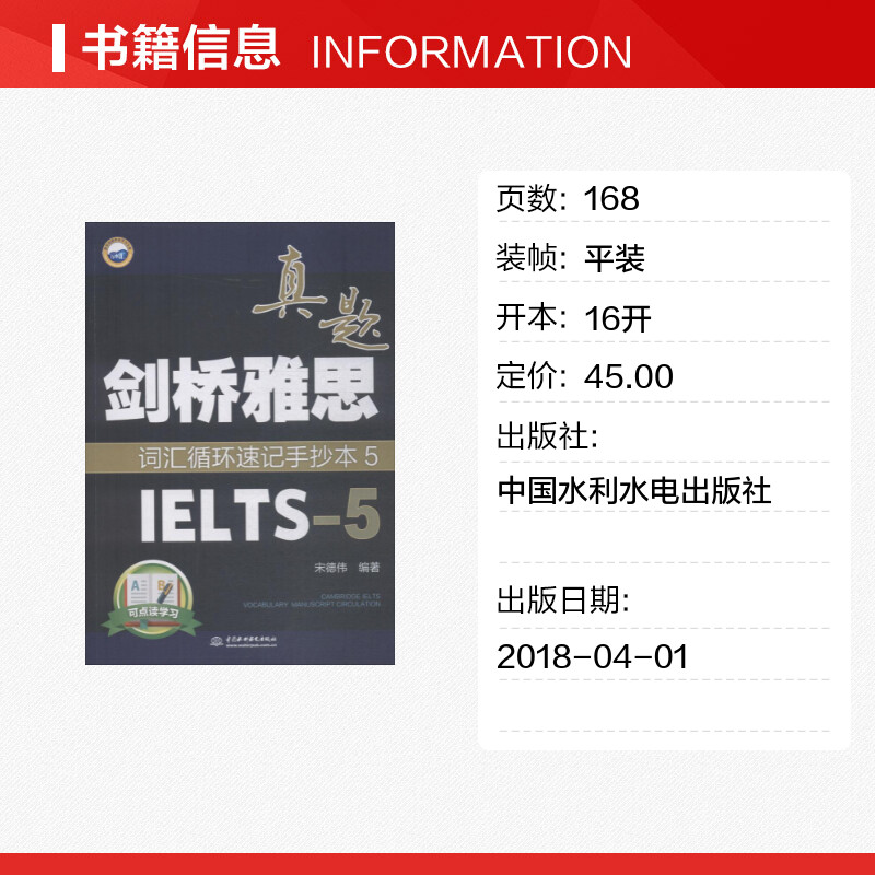 图书籍 社 宋德伟 雅思 IELTS文教 著作 编著 中国水利水电出版 万水汇 新华书店正版 剑桥雅思真题词汇循环速记手抄本5IELTS