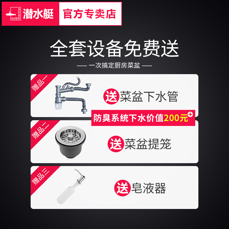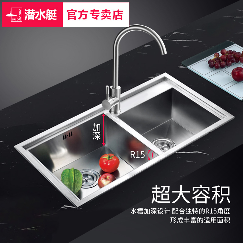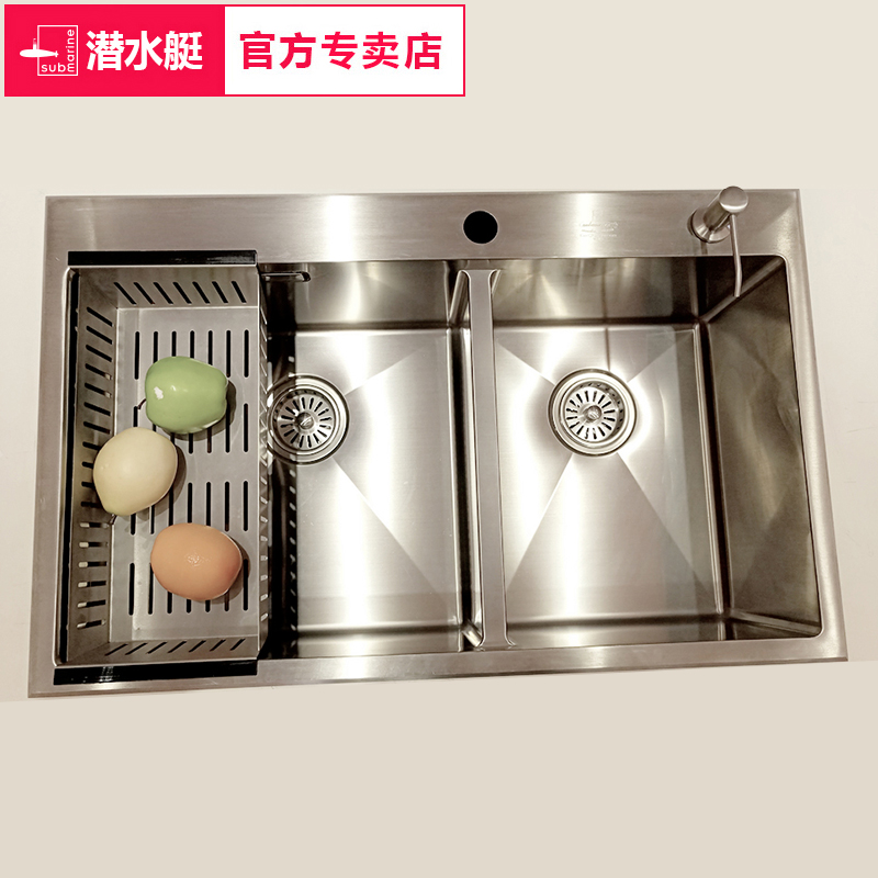 潜水艇厨房手工水槽加厚304不锈钢双槽洗菜盆洗碗池套SGP SH7849