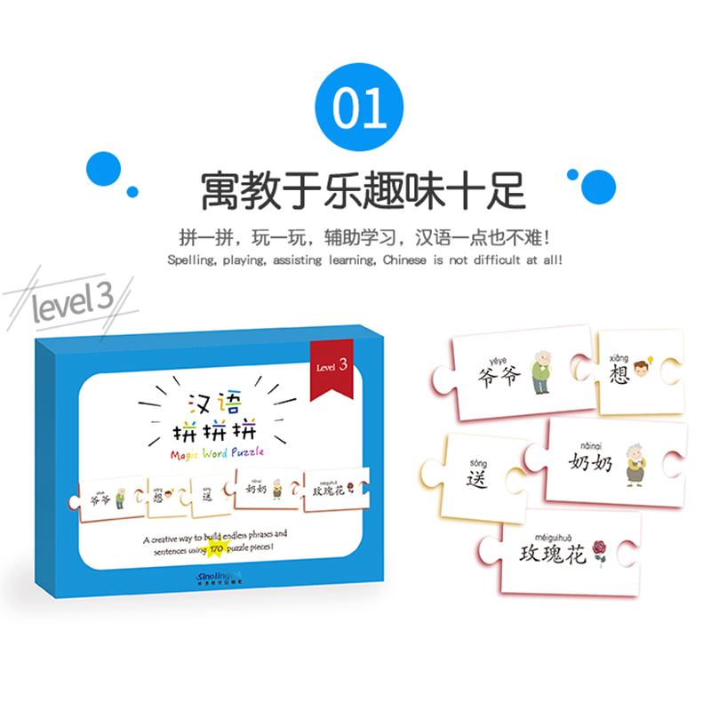 拼音注释 对外汉语拼图卡片 中外学生适用汉语拼音识字 现货正版 6岁益智早教儿童汉字乐玩汉字拼拼乐玩具 汉语拼拼拼YCT三级