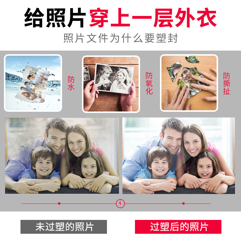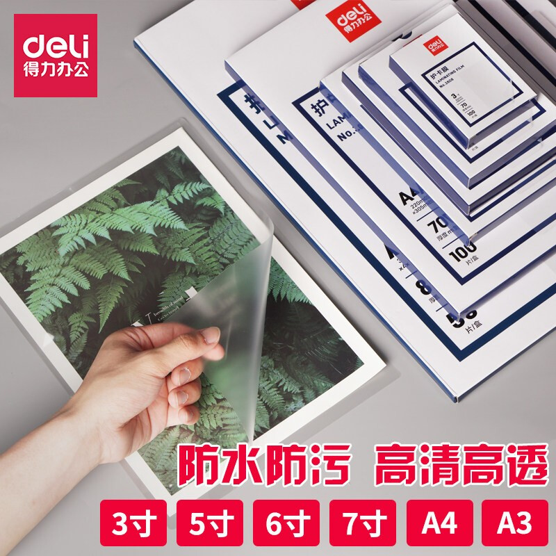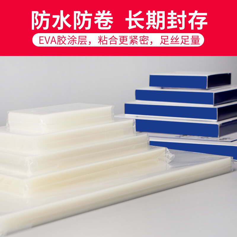 100张 盒 A4塑封机专用耗材3寸5寸6寸7寸照片护卡膜7C相片过胶膜 得力3816防水塑封膜8C过塑膜A3