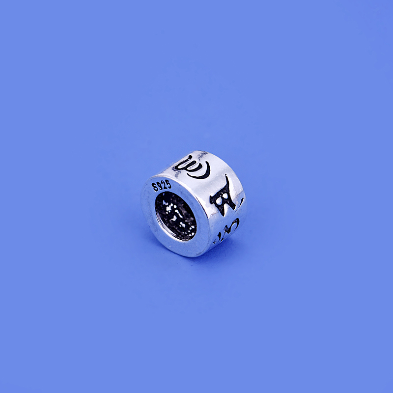 S925纯银泰银复古六字真言隔珠珠子散珠 手工DIY串珠材料佛珠配件