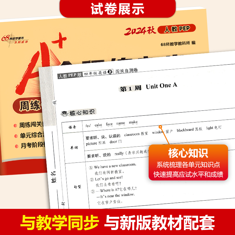 月考 68所名校图书 全程练考卷四年级上册英语人教PEP 期末试卷 专项 期中 单元 周练 小学4年级试卷上册英语 2024秋新版