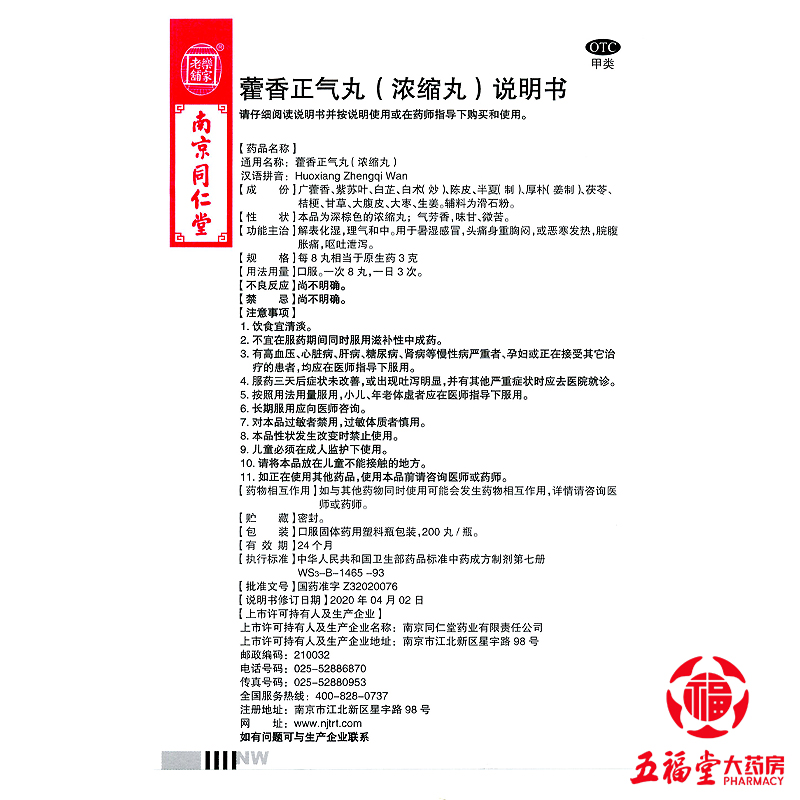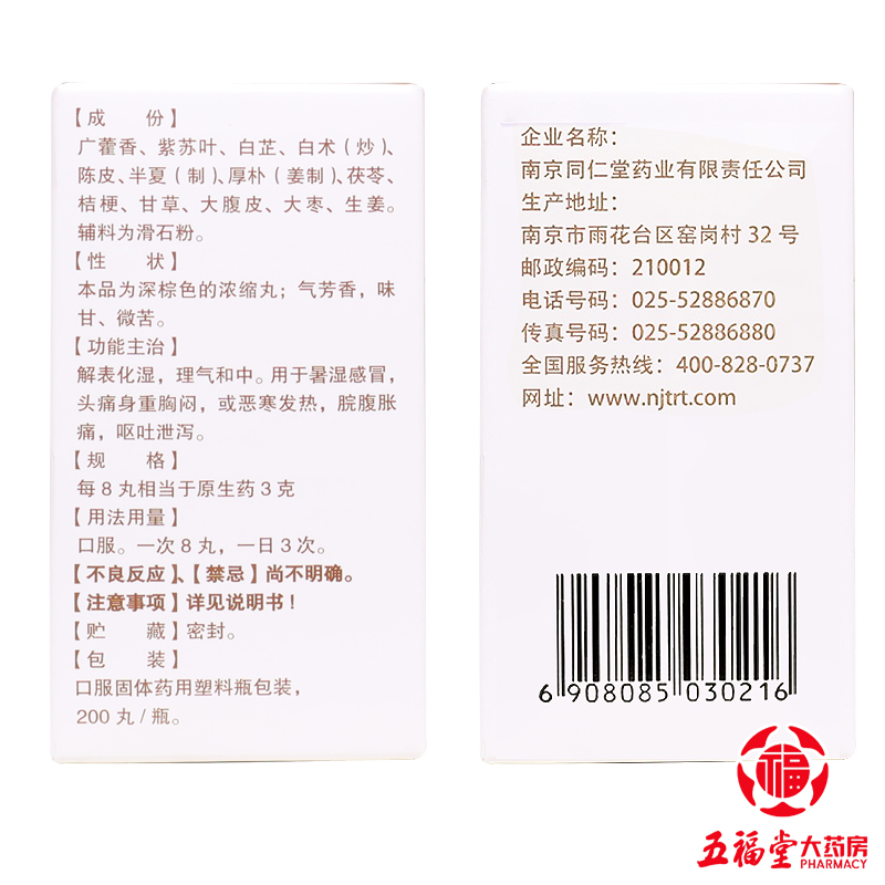 南京同仁堂乐家老铺藿香正气丸200丸浓缩丸腹泻头痛感冒药 包邮