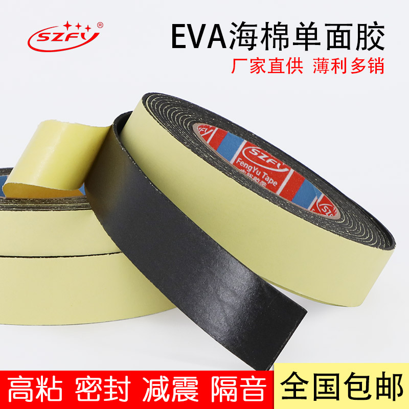 防震泡沫密封胶条2 汽车泡沫垫条 10MM厚 隔音缓冲防撞单面带胶贴泡棉胶带 强粘力EVA黑色海绵单面胶带