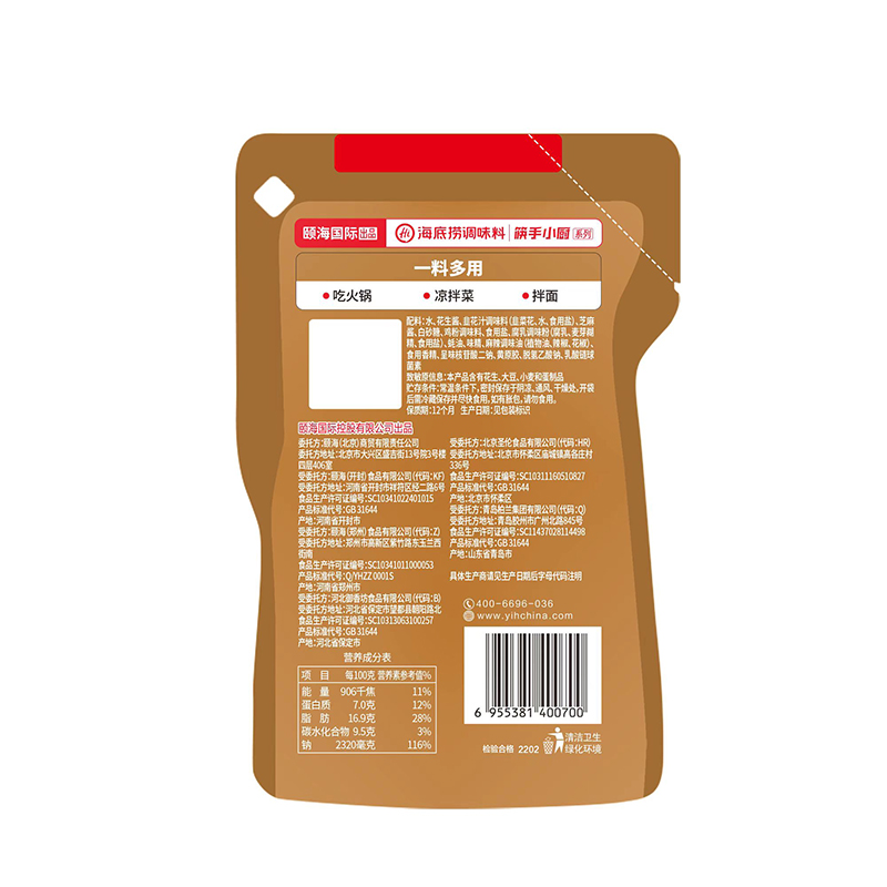 海底捞麻辣火锅蘸料120g 花生酱拌面拌菜酱涮火锅蘸酱料 6袋家庭装