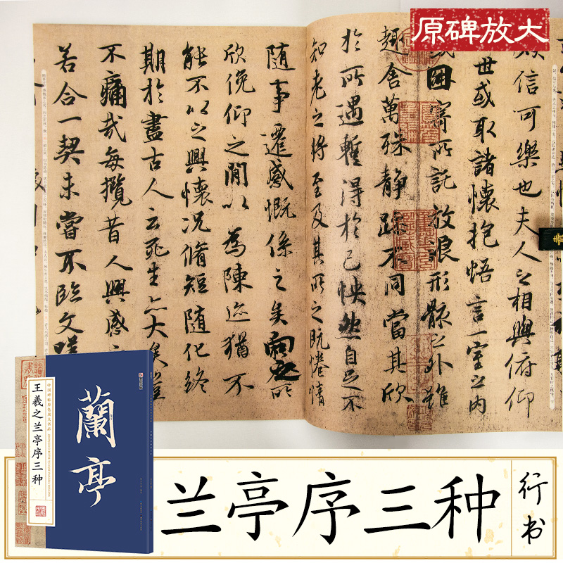 碑帖墨迹临摹范本成人学生毛笔书法练习兰亭序字帖 系列经典 墨点字帖王羲之兰亭序三种书谱珍藏版 毛笔字帖历代书法名家高清放大版