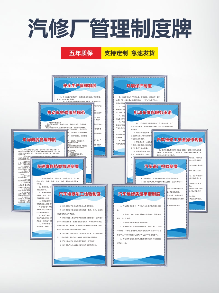 汽修厂管理制度牌汽车维修安全生产标语修理厂4S店人员培训钣金工喷漆烤漆消防操作规程规章标牌子挂图墙贴