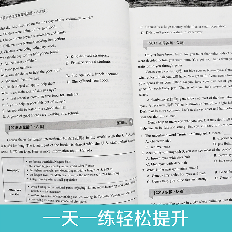初二英语阅读训练 8八年级全一册上下册 通用版 中考真题实战演练 赠全文翻译 周计划 题型突破 初中英语阅读理解GX训练