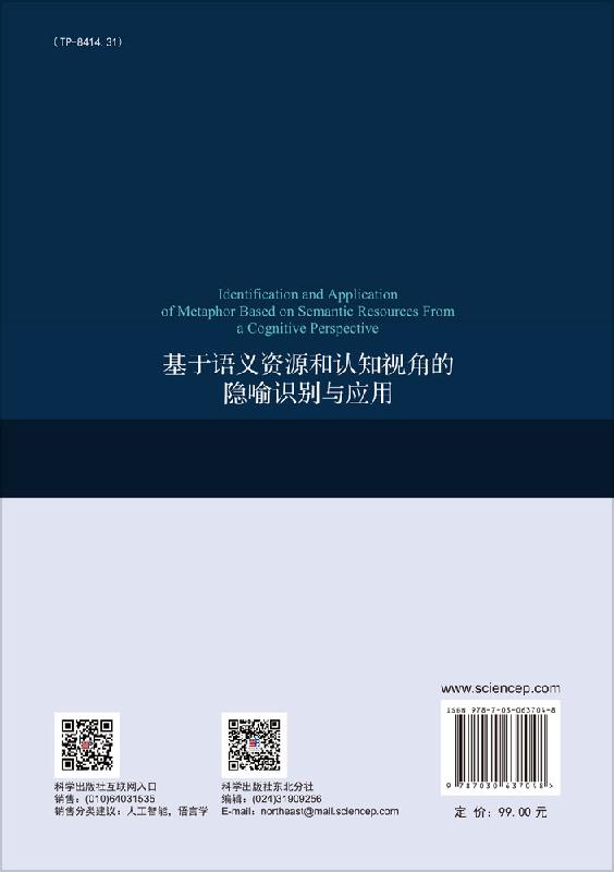 基于语义资源和认知视角 社 隐喻识别与应用科学出版