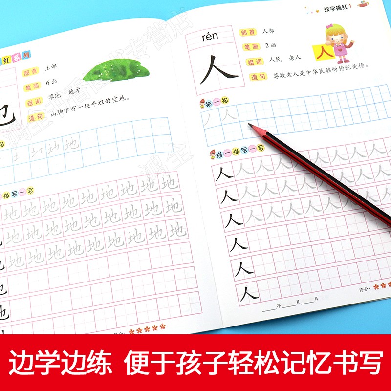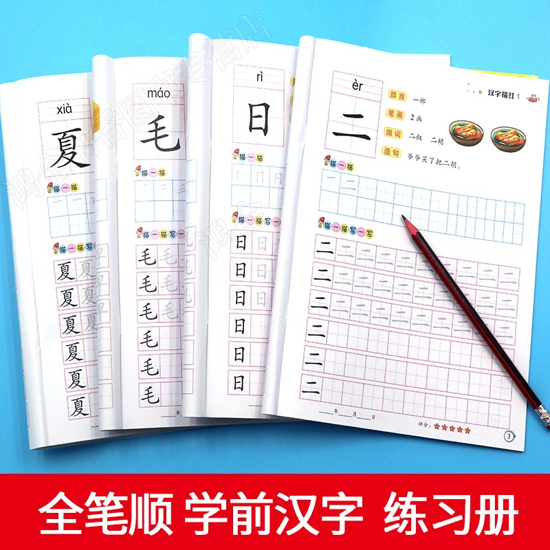 汉字描红本4本全套学写字幼小衔接儿童练字学前300字大班升一年级启蒙初学者本汉子3 6岁学龄前练字帖幼儿园学前班教材