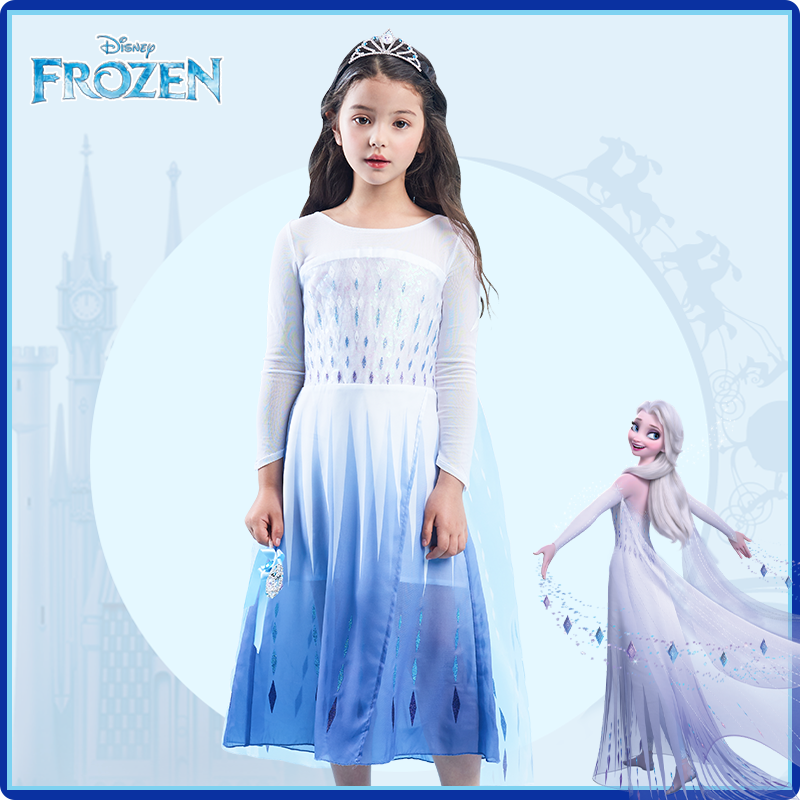 秋冰雪爱莎小女孩生日连衣裙 迪士尼女童艾莎公主裙长袖 限时特价