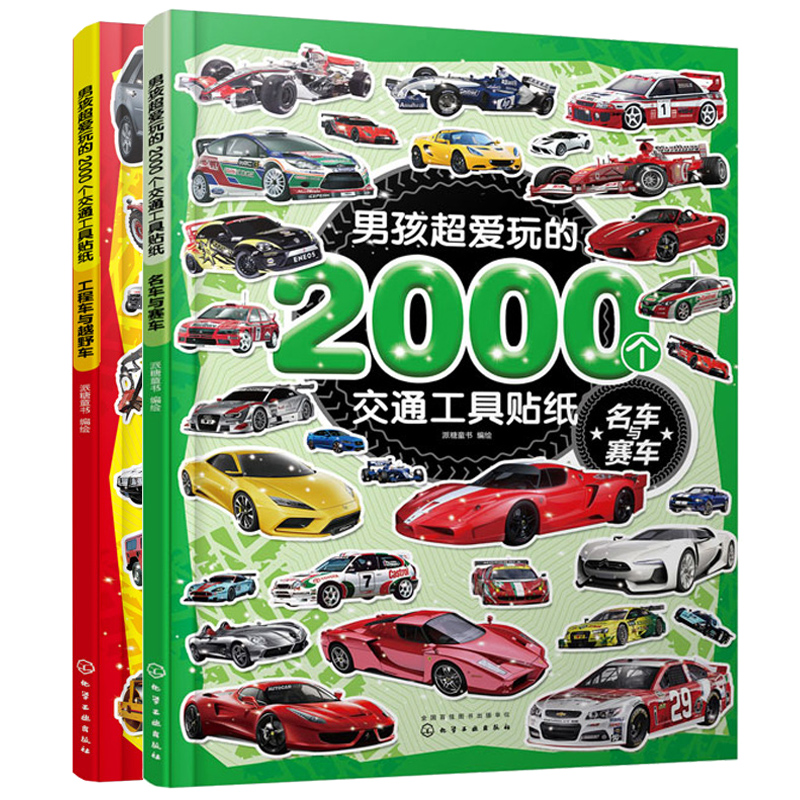 小车迷贴纸游戏专注力训练贴纸书 男孩爱玩 名车与赛车 工程车与越野车 趣味交通工具贴画贴画本卡通贴纸书 2000个交通工具贴纸