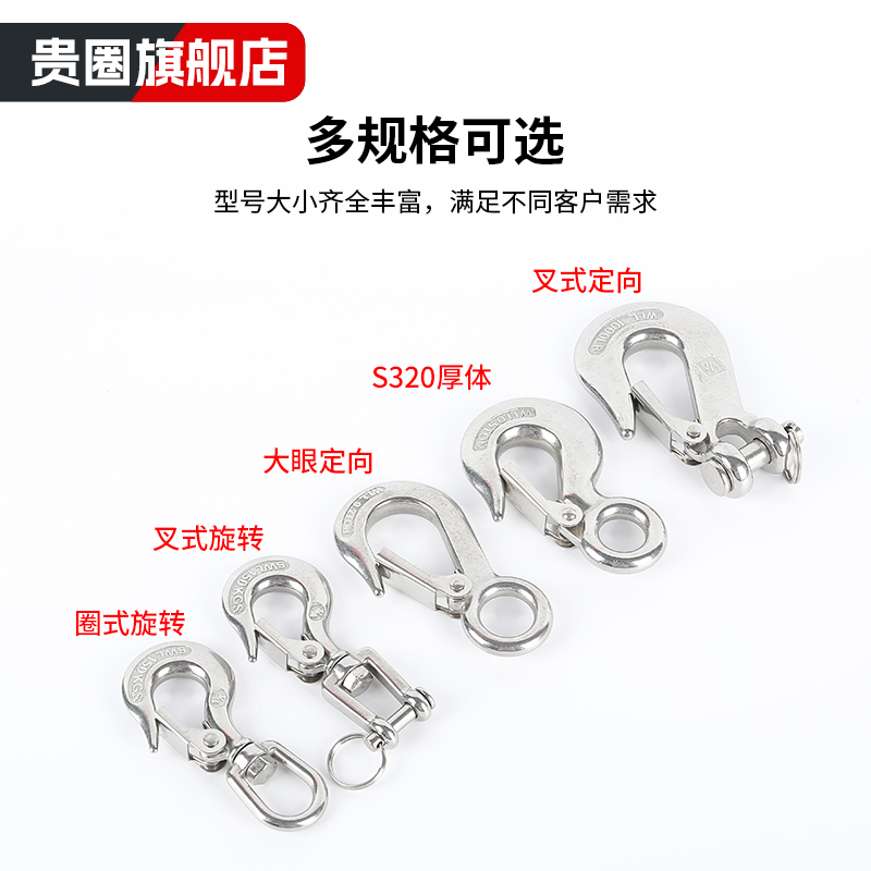 吊钩抓钩 起重钩 定向叉式 承重钩 拉钩 旋转环挂钩 304不锈钢货钩