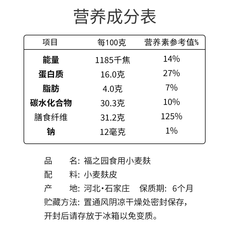福之园生小麦麸粉食用麦麸皮细粉麦皮高膳食纤维粉粗粮粉早餐代餐