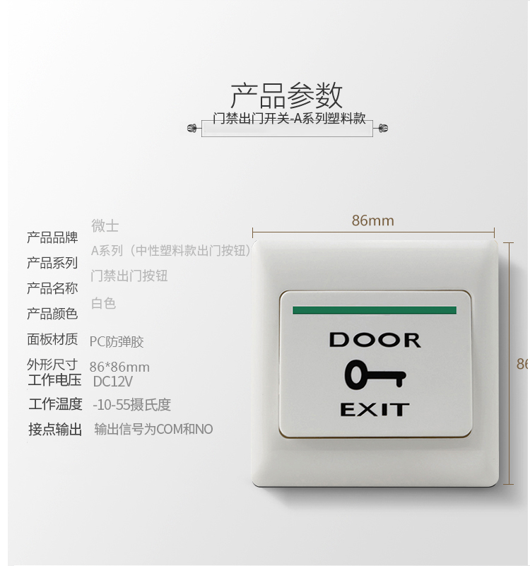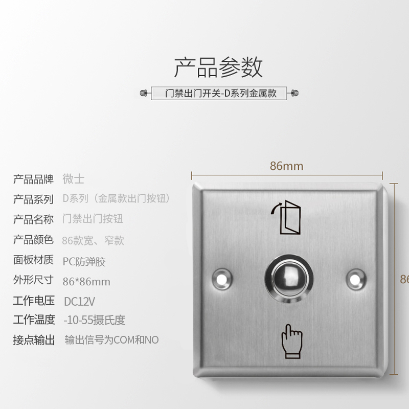 门禁开关出门按钮86型自动复位出门开关明装 常开开门按钮面板 暗装
