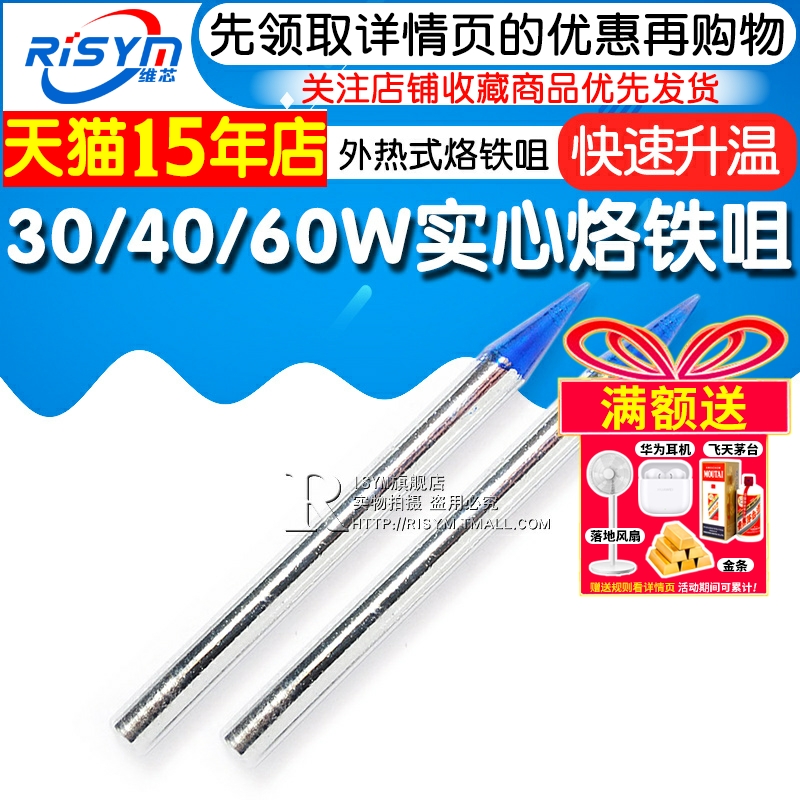 40W 60W 烙铁咀 通用 烙铁头 实心 30W 无铅环保 Risym 尖头