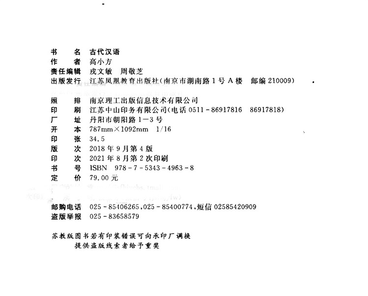 高小方著 江苏凤凰教育出版 高校教材 南京大学文学院考研用书 社 国家精品课程使用教材 古代汉语