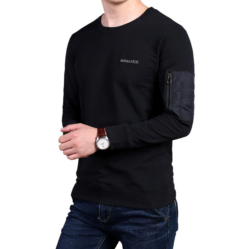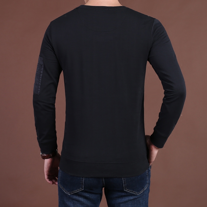 男士 宽松商务休闲体恤衫 圆领纯色长袖 运动大码 男潮 t恤男装 春秋季