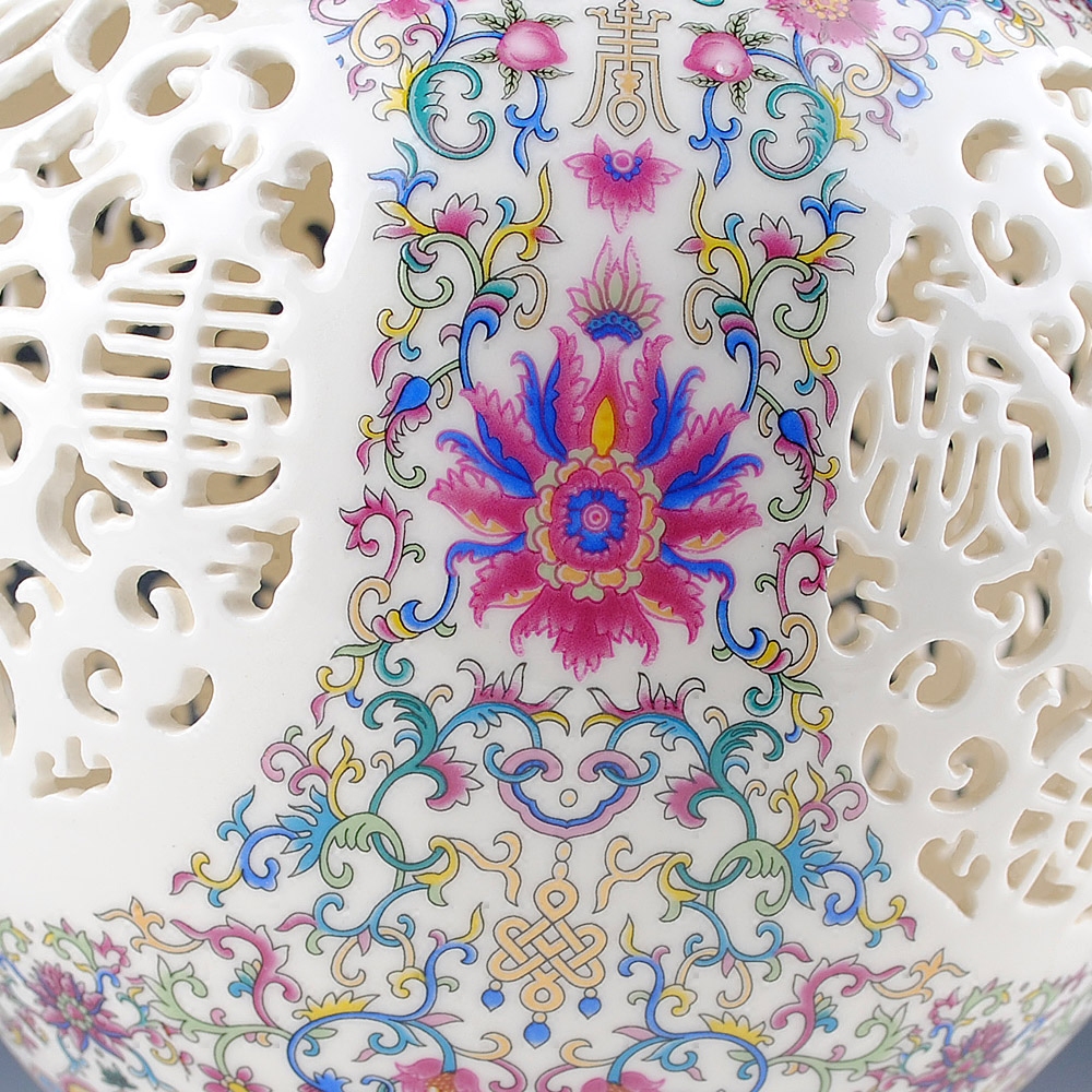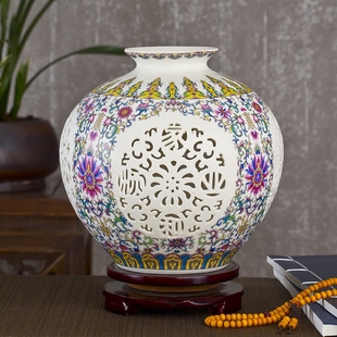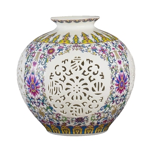 景德镇陶瓷花瓶摆件客厅插花粉彩镂空瓷器现代中式 饰品 家居酒柜装
