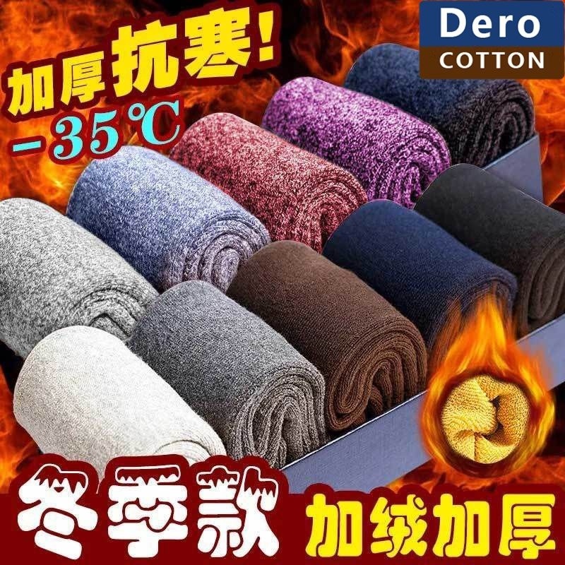 日本袜子男冬纯棉长筒长袜黑色加厚保暖加绒防臭高筒小腿袜秋冬季